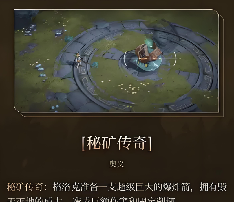 终极技“秘矿传奇”集中释放全部力量,射出一支巨型爆破箭,命中瞬间产生毁灭级伤害与强力削韧,是终结战场的关键大招,适用于高威胁目标或团战收割。