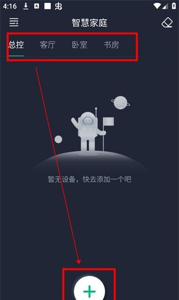1、进入软件后根据需要可在需要添加设备的房间里点击+号