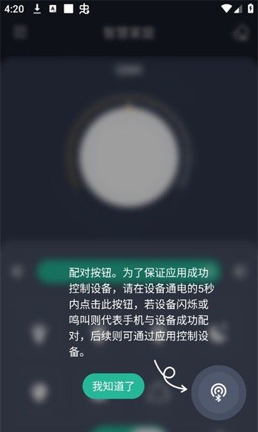 为了保证app能够成功控制设备,请在设备通电的5秒内点击此按钮,若设备闪烁或鸣叫则代表手机与设备成功配对,后续则可通过应用控制设备