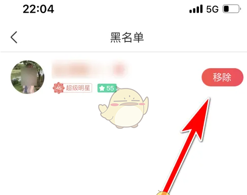 6、点击目标用户图标后方的【移除】选项,即可移除黑名单里的用户。
