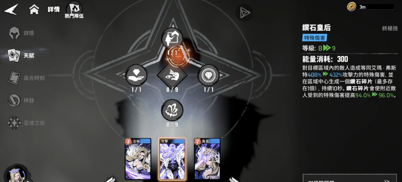 在“雷神+美队+白皇后”的经典组合中,白皇后的终极技能可增强雷神的特殊伤害类型,并削弱敌方防御属性,从而进一步放大雷神各项天赋的实际收益。与此同时,美队提供的攻防增益效果也能提升雷神的持续作战能力,使其能够在前线稳定输出,充分发挥天赋叠加的优势。
