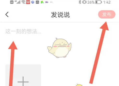3、进入发说说界面,然后上传图片或视频,输入内容,点击【发布】。