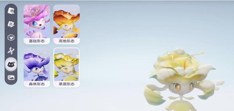 有一些更契合高地环境的飘飘花,它们在颜色和相貌上面都不一样,比如说橙红色的飘飘花就是是此类更适合高地的,还有一些森林形态的飘飘花,它在外观上都是一些幽深蓝色的色调,在装饰品上还有更多的树叶以及藤蔓,所以他们在外观形态上都会有各种不一样的选择,当然目前比较少见的是草原形态的白白花,它们的色彩虽然是黄色加白色的清新色调,但是看起来非常清新,也有一些草原植物的元素,后期的花舞兰在升级之后,也会根据这些不同的形态达到颜色上面的变化。