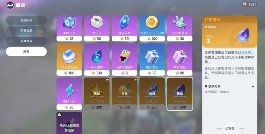 玩家在前期系统也会赠送一些虹光水晶这个道具,获取的渠道目前来说也是比较多的,除了任务获取之外,后期大家也可以通过购买来获取,目前商城里面直接购买的价格还是比较贵的,所以大家有足够资源的情况下再去购买,其次一定要在区域上面找到更适合使用这个道具的区域,因为目前的宠物它们根据自己的自身特色,在生态环境上面是有自己喜好的,所以大家想要捕捉处于虹光状态,下面的宠物这里可以了解这一片区域它的宠物类型有哪一些,如果判断这里虹光区域的宠物类型不是大家想要的,那么就不要浪费道具。