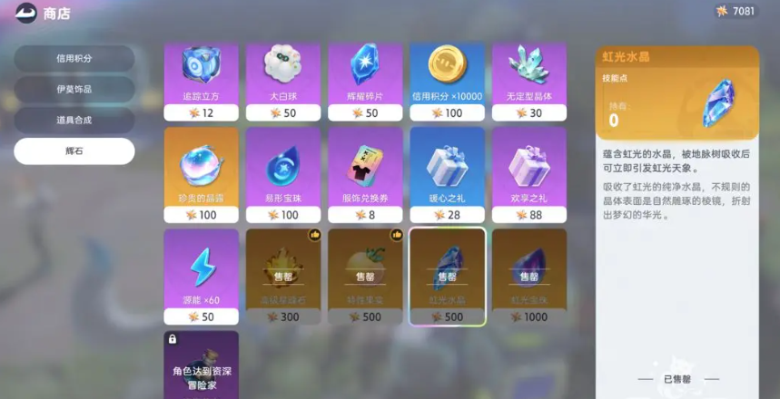 虽然这里大家可以通过随机的天气来获取这些特殊类型的宠物,但是在有一定需求,也比较紧急的情况下,大家也可以通过手动的方式来进行更改,这里的话建议大家可以查看自己手中有没有道具,手动更改天气操作是非常简单的,因为这里有一个道具叫做虹光水晶,它是被地脉兽吸收以后,可以引发虹光天象的一个道具,也就是说就算自然天气没有大家想要的情况下,使用它就能调整当前大家所处区域之内的天气情况,变成虹光天气,但是使用的前提是有一定的条件的。