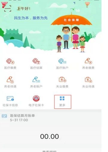 1、手机下载【保定人社】APP,使用本人社保卡登录,点击【更多】