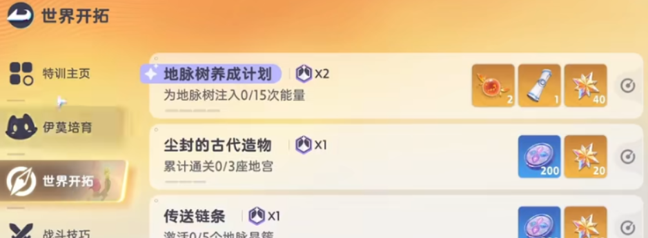 第三个方式就是参与世界探索的任务,这里在世界地图当中探索的时候,所有的任务当中基本都有辉石的赠送,但是奖励的数量不太一样,一般来说完成难度比较高的任务,给的是40个辉石奖励,如果是简单的任务,给的基本都是20个辉石。这里的玩法其实就相当于游戏当中的任务成就玩法,所以参与这个板块里面,根据目前任务的要求来完成,就可以获取相应数量的辉石,难度自然是不高的。