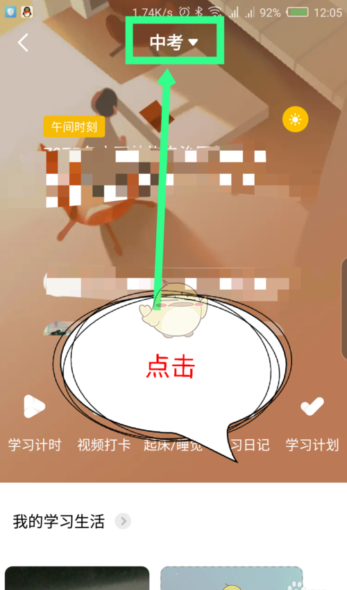 2、打开界面后,点击上面的学习目标,如果设置的目标是中考,上面点击的就是中考。如图所示