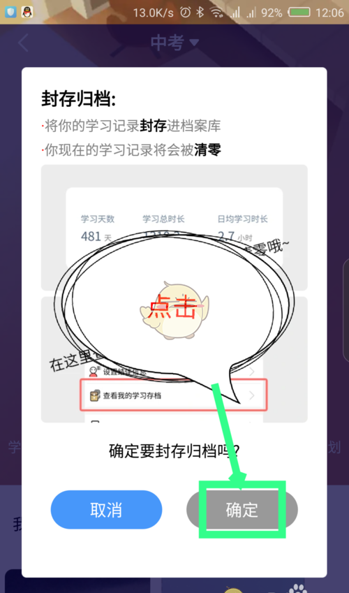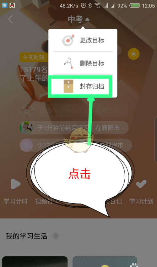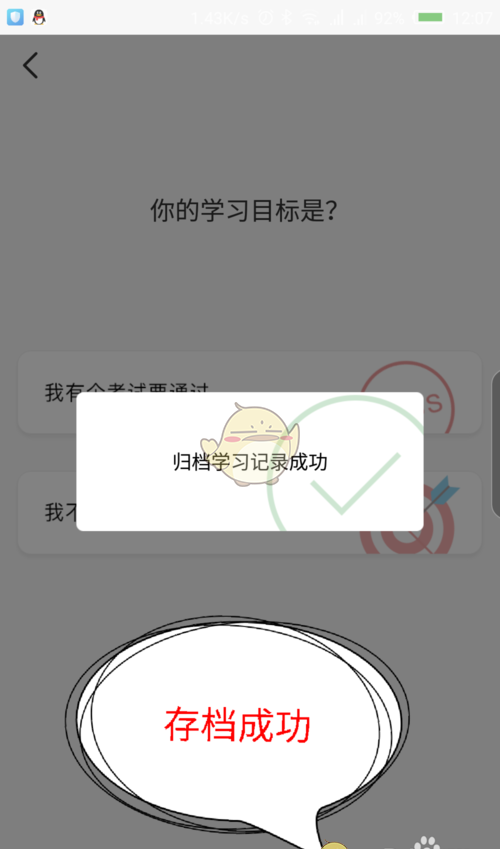 5、点击确定后,屏幕上面会有提示,归档学习记录成功,然后学习设置新的学习目标。如图所示