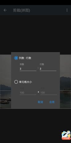 4、下行中间按钮,是用来修改行数列数,进行图片裁剪的,而单元格大小是用来调整宽度和高度的;