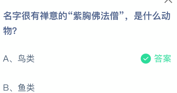 名字很有禅意的“紫胸佛法僧”,是什么动物?支付宝小鸡课堂开课啦!每天花一分钟答题赚饲料,喂喂小鸡就能贡献爱心啦!轻松又意义十足!2025年10月26日蚂蚁庄园的小鸡课堂题目正确答案是【鸟类】,紫胸佛法僧是佛法僧目佛法僧科鸟类。
