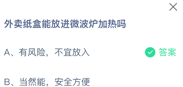 以上就是外卖纸盒能放进微波炉加热吗,支付宝蚂蚁庄园2025年10月27答案最新,更多精彩内容,请点击关注更新!