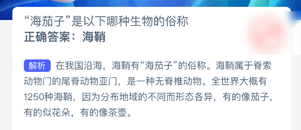 以上就是“海茄子”是以下哪种生物的俗称?神奇海洋今天答案最新2025年10月26日分享,更多相关攻略内容,请点击关注更新!