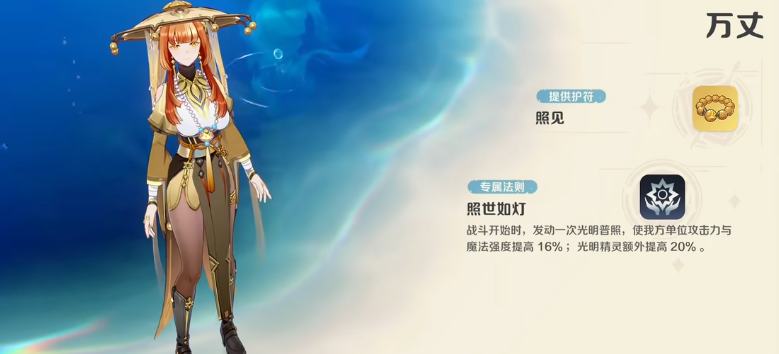 如果大家用的是万丈这个角色的话,他的心像搭配上面,专属法则效果是可以在战斗一开始的时候就发动攻击的,这里的话可以使我方单位在攻击的情况下,魔法强度得到足够大的提升,而且带来的光明精灵效果还有额外的加成,很适合被一些光明流派的角色一起进行搭配使用,所以在不同的角色他的心像能力上面都有不同的效果,当然这里心像上面一定是有一个护符以及一个技能进行组成,才可以达成全称的心像效果。
