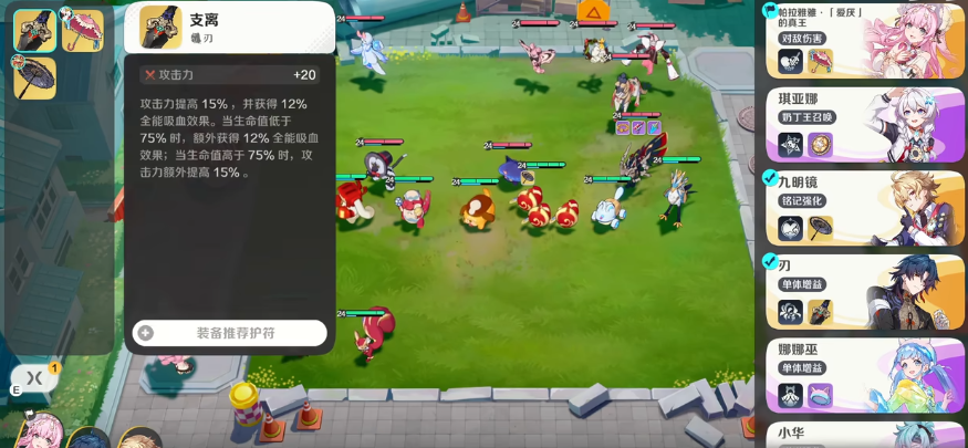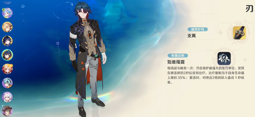 如果大家在前期想要拥有更长久的生存能力角色的时候,可以考虑用刃,他在这里根据增加吸血能力的数值上面,也会有额外的12%提升,所以根据层数来判定的话,他的每次吸血能力都是有12%的提升效果,所以总吸血的数值有两层叠加之后就可以达到24%的吸血,这一点的话,也会让他对于奶妈的需求没有那么强,队伍整体来说也不会更需要依赖于奶妈,他的带来的治疗,这个技能效果相对来说就是保证他的生存度足够。