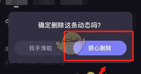 4、点击弹框中的“狠心删除”按钮,删除动态