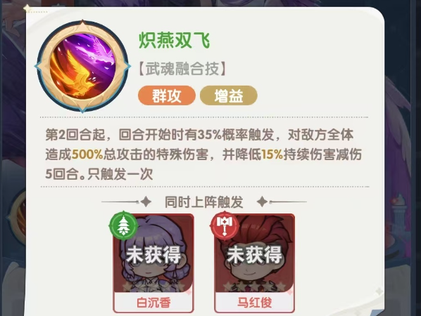 通过技能效果就可以看出,白沉香在实战中的定位,除了可以打出伤害之外,更重要的是恢复队友的魂力和提供一系列输出方面的加成,非常适合搭配强势的,敏攻或者是强攻系魂师使用。小编比较推荐的阵容是走灼烧流,也就是选择千道流、马红俊、白沉香、柳二龙和奥斯卡一起搭配起来。其中马红俊和白沉香可以触发融合技,在第二回合起就有几率触发,对敌方全体造成高额伤害,并且降低对方对持续伤害的减伤,持续五回合。马红俊本身就是非常强势的强攻系魂师,配合上柳二龙,在白沉香和奥斯卡的辅助下,能够打出极高的伤害,千道流在前排扛伤害,整个阵容非常稳定。