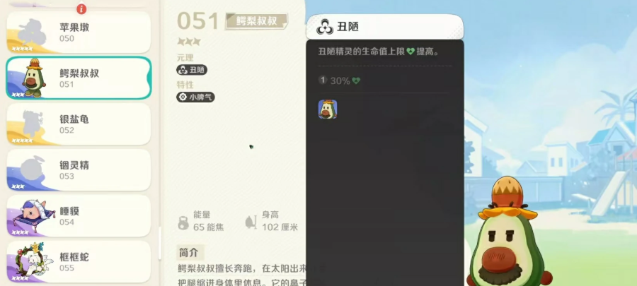 崩坏因缘精灵鳄梨叔叔怎么样?在崩坏因缘精灵这款游戏里面,大家遇到的精灵,他们在外观上面都会有一些特点,比如说本期为大家介绍这个三星基础精灵,叫做鳄梨叔叔,崩坏因缘精灵鳄梨叔叔怎么样要根据外观其实根本猜不出来它的定位,鳄梨叔叔它的外观上面看起来就是非常像一个牛油果的外观,它的本身自身原理以及特性,都是为会为后期阵容组成带来一些特殊效果的,所以下面关于它的能力大家可以了解一下。