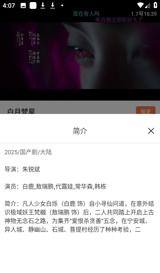 香葱追剧app剧集怎么选择,下载安装好最新版的香葱追剧,打开应用,接着任意选择一部你喜欢的电视剧,这里以“白月梵星”为例,播放界面,可以直接查看这部剧集的全部选集内容。