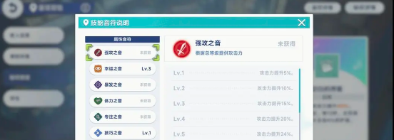 爬塔之后就可以把当前的编队记录还有潜能选择全部都保存下来。下一次再玩其他的玩法时就可以直接使用,不需要去反复的调整,还是比较方便的。最后说一下爬塔的核心机制,这就是音符系统在探索时遇到随机事件关卡就会有概率拿到音符,而这些音符就可以迅速的提升战斗力。选择相同的音符就可以增加队伍的伤害,不同的音符还可以触发一个协奏技能。要是把指定数量的音符放在一起,还可以解锁额外的效果。