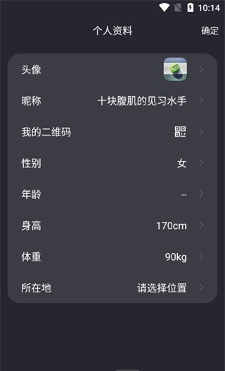 2.完成登录后在个人资料填写页面中填写个人信息,并点击右上角的“确定”完成填写。
