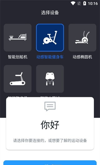 3.选择想要连接、或是想要了解的运动设备,并点击确定继续操作。