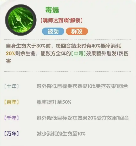 此人物角色在史莱克学院中是至关重要的核心人物因为在各种战斗的过程当中都特别擅长使用于毒属性的技能,此技能可在各种战场当中快速释放出控制效果,还会给敌方造成较大的伤害值,每次释放出来的伤害都可达到生命值的15%以上。在选择了此角色之后,还需对于独特的阵容体系有全面的了解,比较适合于光暗或者是水毒等。独孤博人物角色中也有很多独特的技能属性,比如其中的主动技能,那就是可对敌方全体造成较大的伤害值,每层造成的生命伤害值都可达到2%以上。其次还有就是毒暴的被动技能,当自身的生命值高于30%以上时,就会触发全体重度伤害,对敌方造成较大的伤害值。