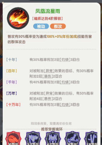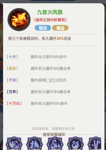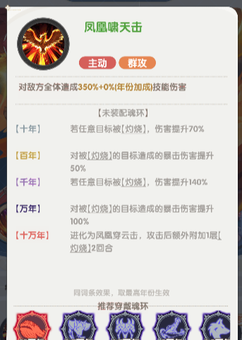 【十万年】进化为凤凰穿云击,攻击后额外附加1层【灼烧】2回合