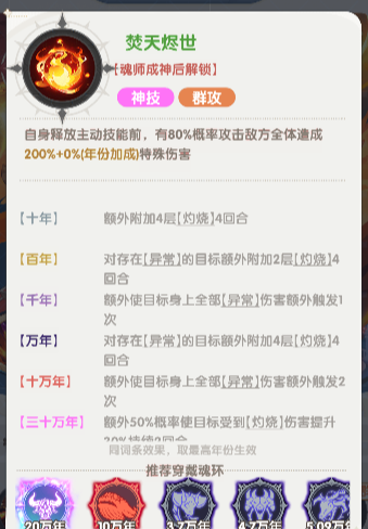 【万年】对存在【异常】的目标额外附加4层【灼烧】4回合