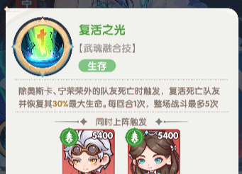除奥斯卡、宁荣荣外的队友死亡时触发,复活死亡队友并恢复其30%最大生命。每回合1次,整场战斗最多5次