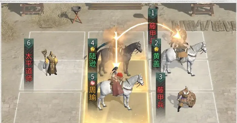 为了最大程度发挥爆发能力,站位上需要让陆逊踩到周瑜和黄盖的追击格,以多次触发其天赋【不意流火】。