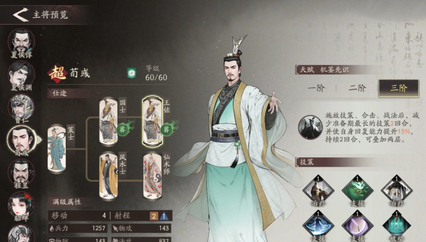 如果你是一名新手玩家的话,那么小编推荐你选择曹操和夏侯敦,还有张辽。曹操的主要作用是为队伍提升整体的防御能力,对于前期比较脆皮的新手玩家来说非常友好。夏侯敦作为坦克能够进一步的为队友抵挡伤害,而张辽是一个突袭型的角色,这样的配置能够让你轻松的应对一些难度比较高的关卡。另外,为了进一步提升荀彧的属性,小编剑意在为他选择武器时,尽量选择带有法术攻击属性的武器,这样不论是治疗量还是治疗效果都可以提升。