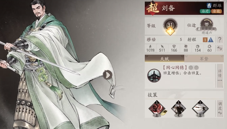 刘备则是蜀国队的角色,仁德技能能给全队套群体护盾,护盾能帮队友扛住关键伤害,避免后排输出被秒,和关羽、张飞搭配的时候,能触发蜀国阵营的属性加成,不仅生存能力拉满,输出也会有额外提升,前期如果抽到刘备,哪怕暂时不用,也别分解,等凑齐关张后,组成桃园队会特别强势,每一个角色都有不同的优势,在培养的时候,优先提升角色的等级,接着可以多去带角色,参加主线任务,积累更多的战斗经验,每个角色都有基础的能力,只要把资源集中在这些武将身上,就能把他们培养的更优秀。