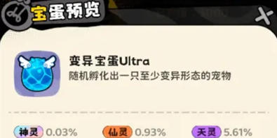 6、宝蛋分为三种,正常宝蛋是显示什么形态只能开到什么形态的宠物。宝蛋Pro为当前冒险关卡的宝蛋,21之后可以开出天灵,31之后可以开出仙灵,51之后可以开出神灵。宝蛋Ultra为冒险80关宝蛋,一般只能充值获取。