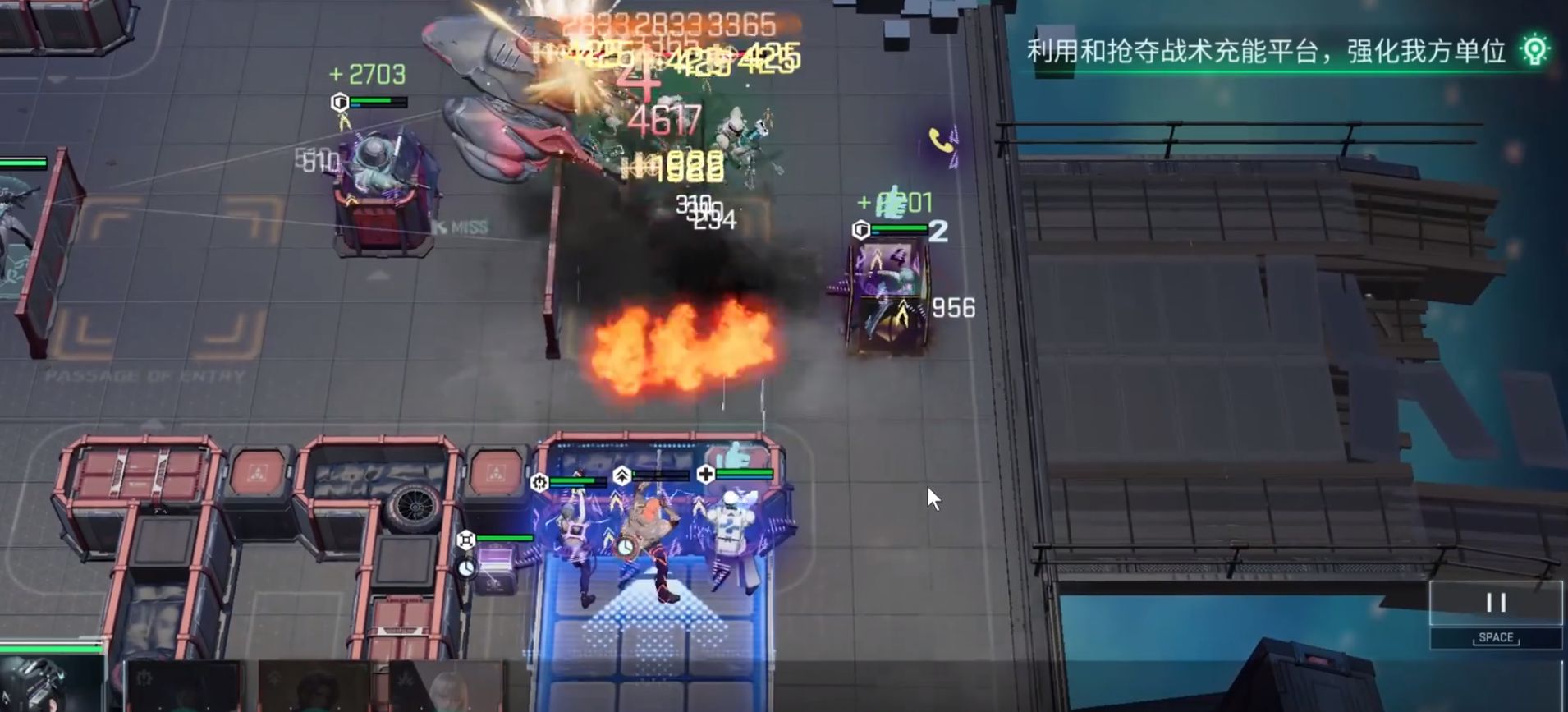 最后是90秒之后的爆发输出阶段,当boss的护盾破裂触发“弱点击破”的时候,这个时候boss会眩晕五秒,承伤提升50%,就可以全员集火boss了。当boss护盾再生之后就可以重复部署“重盾嘲讽和侧击累积”的循环,还可以加入塞谬尔激活右侧的EMP陷阱,会产生额外的20%护盾伤害值。