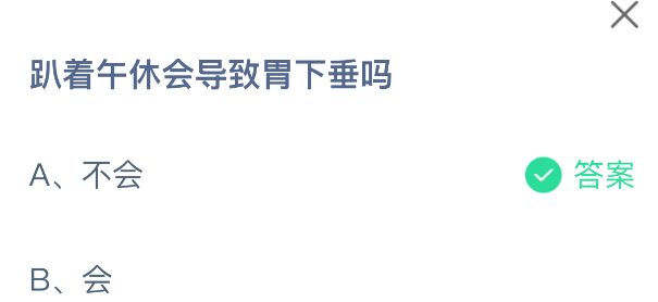 以上就是在趴着午休会导致胃下垂吗,支付宝蚂蚁庄园2025年11月1日答案最新,更多精彩内容,请点击关注更新!
