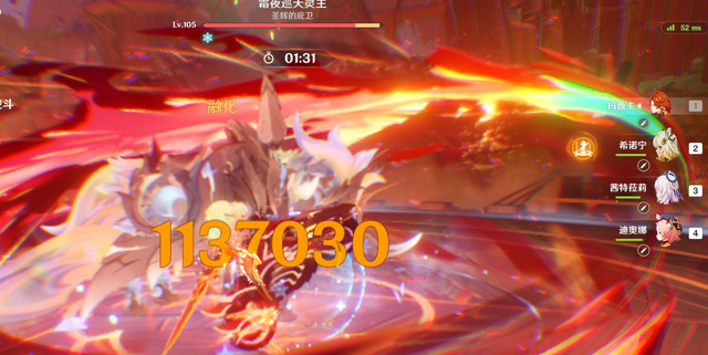 而伊涅芙,遗憾没有满辉技能,爱诺则是伤害太低,灰色血条积攒不明显。当然,如果没有挪德卡莱角色,还可以上你输出最高的队伍,力大砖飞。