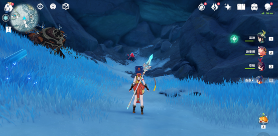 得知有几处被蓝色植物包围的古代坚冰,其中似乎隐藏着其他碎片,继续探寻雪山。
