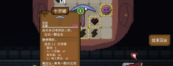 在《背包英雄》手机版中,十字镐是一把极具成长潜力的实用武器。它虽基础伤害较低,但每次击败敌人都能生成宝石,每在邻接处镶嵌一枚宝石即可提升1点本场战斗中的伤害。这一特性使其随着战斗推进越战越强,后期甚至能实现秒杀BOSS的爆发表现。