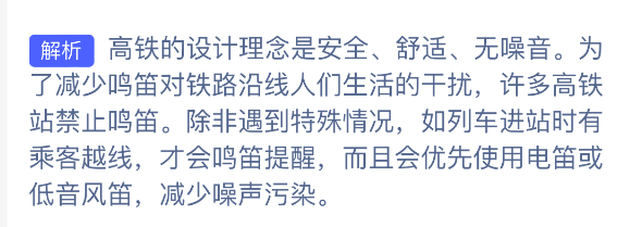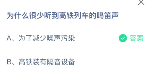以上就是为什么很少听到高铁列车的鸣笛声,支付宝蚂蚁庄园2025年11月3日答案最新,更多精彩内容,请点击关注更新!