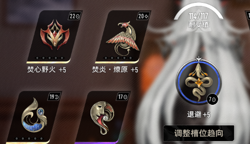 当然还有一些备选的词条,例如焚心野火可以进一步的提升火属性的伤害,虽然说角色的输出能力并不算主力。但多一点伤害,那在打败小怪时也会更快面对一些血厚的小怪时,效果还是很明显的。羽翼鼓舞这也是可以选择的一个在增加技能耐久之后还可以叠加专属武器的效果,可以让灼热地狱的持续时间继续的延长,不需要去频繁的开技能捕捉伤。最后推荐一个必退,主要是为了让核心词条拥有比较稳定的属性触发,避免冲突而导致失效。
