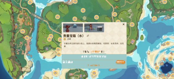水系宝箱是在魔法师之家东部的小岛上,玩家来到小岛区域才可以看到。要想解锁,那就必须要通过水系精灵在打开之后就可以获取水系灵碎和无花果,如果玩家正在养水蓝蓝这一类的宠物,那就别错过。
