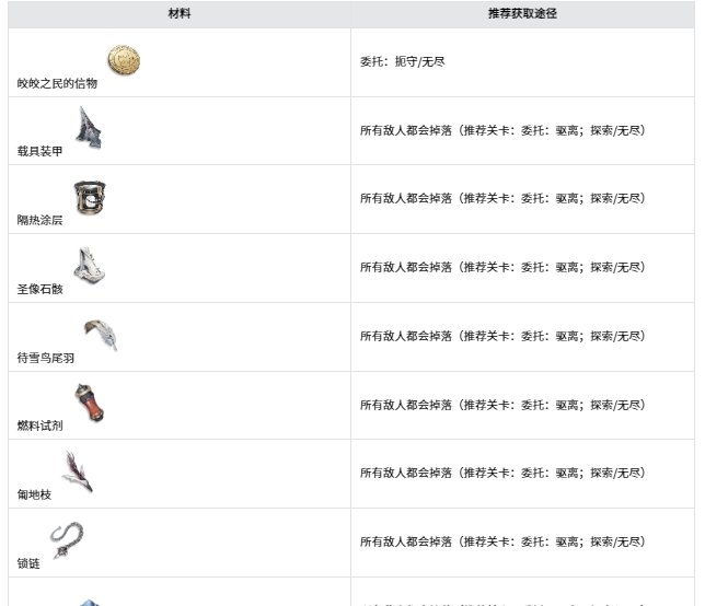 下述这些材料同样也是角色技能升级所需的材料,在整个流程中会不断地获取并消耗。