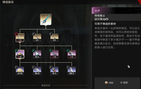 (铸造一把武器需要消耗的材料)