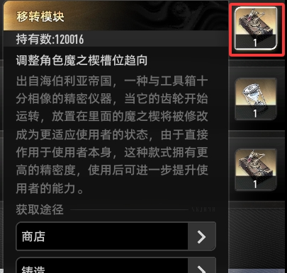 一个角色随着等级提高,耐受值也会提高,但是即便到了后期,一个角色想要携带全金魔之楔,大部分情况都需要至少2个转移模块才能达成。从获取方式不难得出,转移模块的在前中期的数量还是比较稀少的。