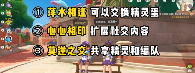 真正的社交核心就在三档好友好感度中。第1档就是萍水相逢,在加好友之后就能解锁,可以和对方交换精灵蛋。说不定孵化出稀有精灵之后就能补全收藏,而你手中的限定精灵蛋就可能是对方一直奢求的宝贝。这一个设定比较适合于刚刚认识的玩家,不需要尴尬去寻找问题。好感度在逐渐提升之后就会进入到心心相印的档位,这个时候可以解锁的玩法还是比较多的。例如可以解锁专属的剧情,还可以通过组队的方法去挑战隐藏的副本。例如解锁双人精灵特训。