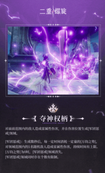 第二个被动技能“黑云执掌”,在夺神权柄,以及军团惩戒造成伤害后,可以连续性的触发雷属性额外伤害效果,和万钧之势形成一个输出闭环,触发期间,会基于自身所装备的近战武器攻击倍率提高概率。