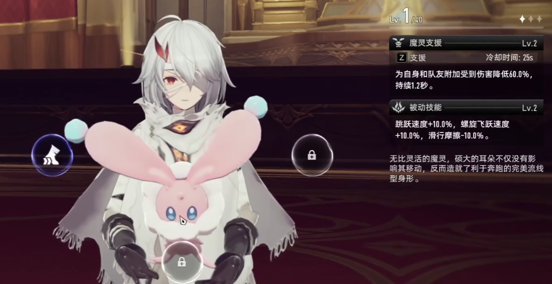 同时,珍珠兔魔灵的被动技能,可以增加玩家的跳跃速度15%,螺旋飞跃速度15%,滑行摩擦可以减少20%,该技能效果可以使得玩家跑图时的效率增幅。