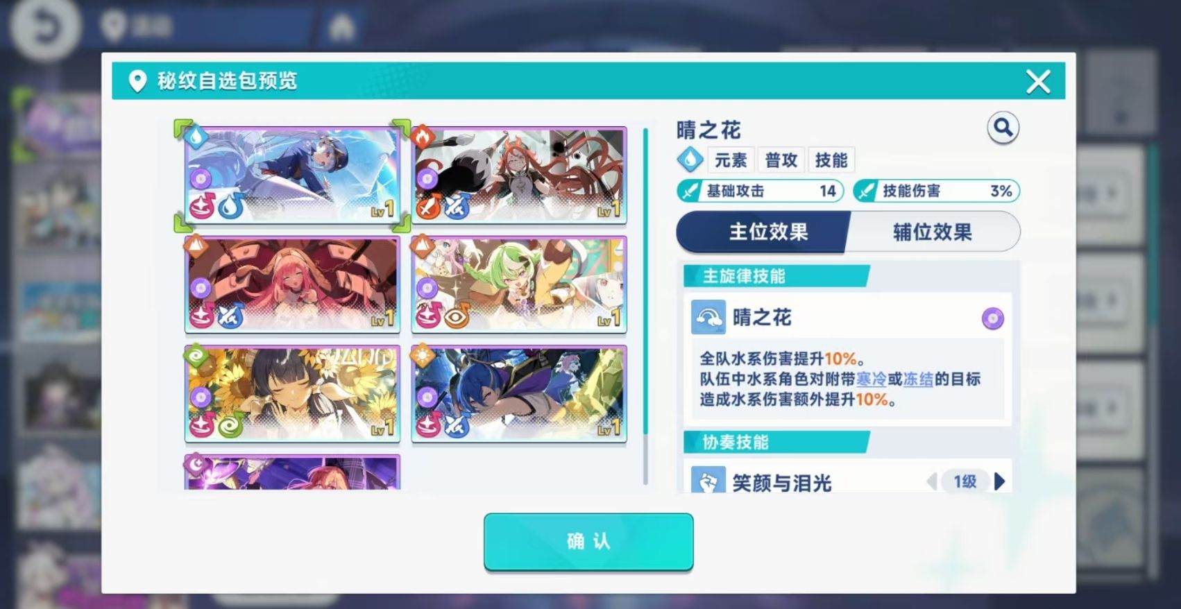 当然了,要是自选礼包里的同元素秘纹已经是玩家所拥有的,且玩家其它元素的虹彩秘纹较少,那选择其它元素的虹彩秘纹作为补充会更为合适,毕竟玩家们不止需要培养一只队伍,因此在主力队秘纹已经拿到手的情况下,为二队、三队挑选秘纹,降低它们的养成压力也不失为一个合适的选择。倘若礼包内所能选的秘纹玩家至少都有一张,那就选与自己主力队元素相同的秘纹,并为该秘纹升星,好令它所提供的技能效果变得更强。各位可看一下自身属于哪一种情况,然后再进行秘纹的选择。