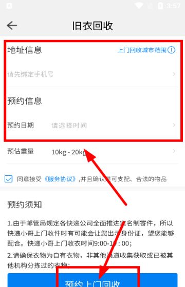 2、选择需要回收的品类,预约上门回收的时间